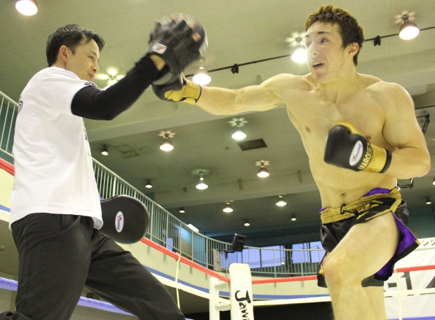 12月7日(日)東京・GENスポーツパレスで開催されたK-1アマチュア大会「第3回 K-1 CHALLENGE 2014」K-1チャレンジの部で、1月18日(日)国立代々木競技場第二体育館大会「K-1 WORLD GP 2015 ~-60kg初代王座決定トーナメント~」でゲーオ・フェアテックスと対戦する木村“フィリップ”ミノルがミット打ちのデモンストレーションを行った。